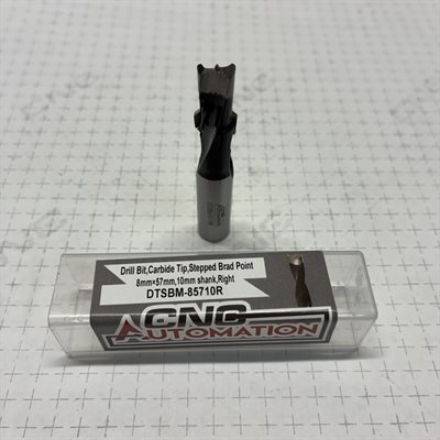 Drill Bit, Carbride Tip, Stepped Brad Point, 8mm x 57mm, 10mm shank, Right